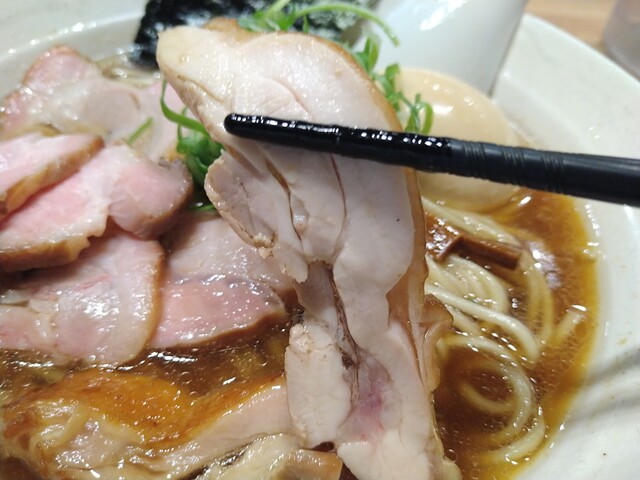 チャーシューは豚が3種5枚、鶏が2枚入っています。
