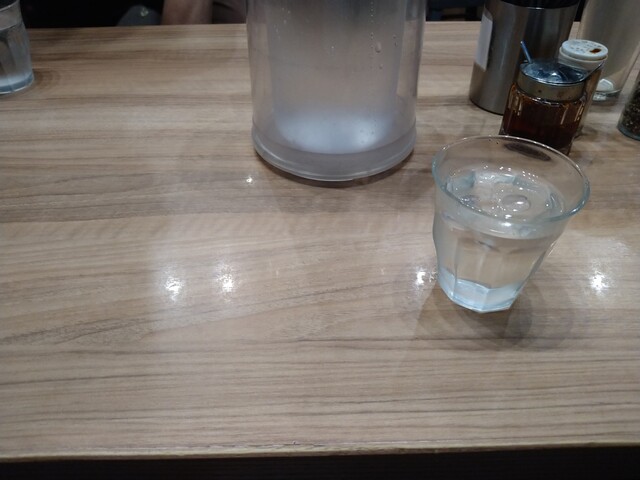 店内はカウンター4席に、6名席、4名席、2名席が1台ずつでMAX16名のキャパですが、6名席の相席(V型フォーメンションで3名)に通されました。本田店主もいらっしゃったのでカウンター席に座りたかったのですが。