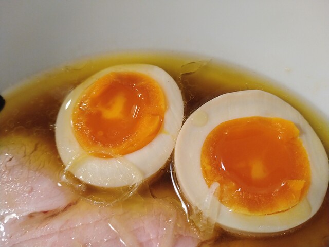 ワンタンは1個だけですが、鶏ひき肉に軟骨が入っており面白い食感です。味玉は柏の「むこたま」というのを使用しているとのことで、小ぶりですが玉子自体の味が濃くて美味でした。アクセントの三つ葉と柚子皮も地味ですがなかなか良い仕事をしています。メンマが無いのは残念でしたが、スープ、麺、トッピング全てに店主さんの本気度がビシビシと入魂されている素晴らしい中華そばでした。量は少なめですので、皆さん(女性でも)「和え玉」を注文されていましたね。