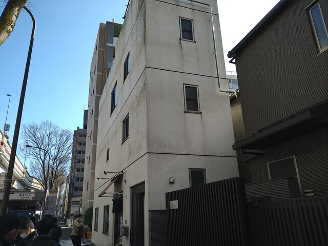 こんな細いビルです。上には人が居住してます。