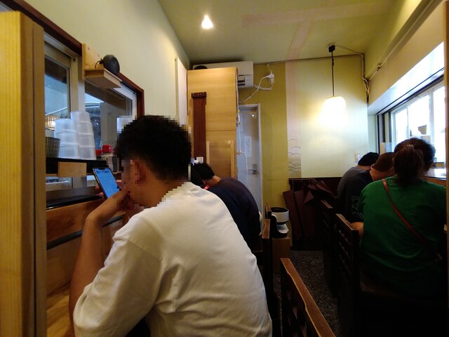 これだけ待たされてもこちらを訪れるお客はそれを承知で来ているため、変な緊張感などは一切なく、また店主さんはホスピタリティも徹底されているので、回転を上げるべく調理先行で店内をないがしろにする訳でもなく、独立厨房とホール(と言える広さではありませんが)を慌てることなく行き来しながらマイペースで作業されています。厨房向かい合わせのカウンターではないので相当大変だと思いますが、店主さんは笑顔と挨拶を絶やしません。