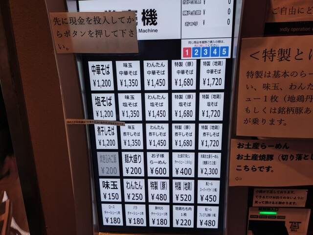 タッチパネル式券売機で「特製(豚)中華そば」1680円をポチるとテーブル席に案内されました。