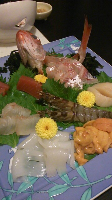 刺身は生まぐろ中トロ・タイ・活き車海老で非常に質の良いものでした。