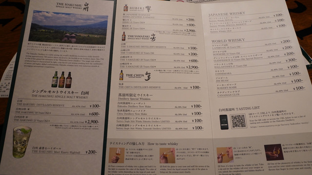 外国産などもありますが、やはり定価では飲むことができない白州・山崎・響の飲み比べをオススメします。