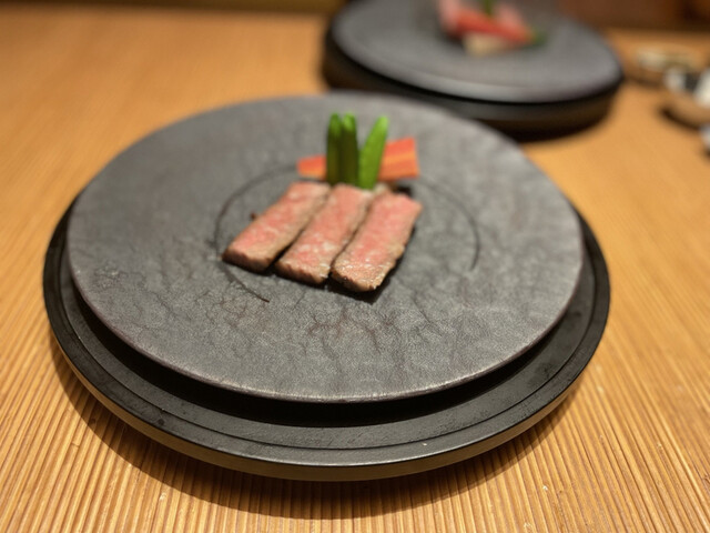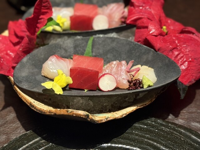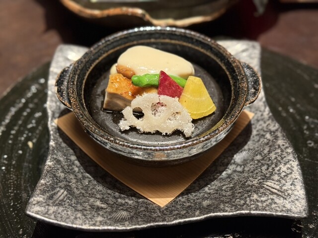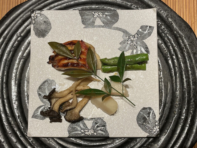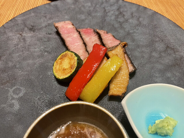 お楽しみの夕食は一つひとつ丁寧に仕上げたお料理で、特にお魚を使った料理が美味しいです。KENZOのワインも揃っていますのでしっかりいただきます。