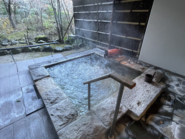露天風呂からは裏側の山をプライベートな庭として眺めていられますし、とても静かなのでまるで別荘にいるようなプライベート感覚です。