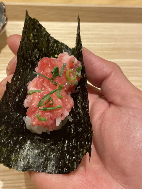 次の3貫は、まぐろ、カンパチ(ガーリックリップ入り)、車海老です。もはやボキャブラ不足ですので素直に美味い、握り寿司の形をした絶品料理といった感じで、なんじゃこりゃを確信。