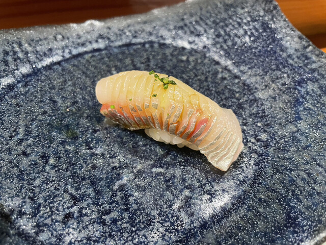 シャリの温度も徹底していて人肌なので口に入った時の違和感もなく、すべてのネタは寝かせや仕事が入っていて、口の中でのほどけ方が見事です。蒸した太刀魚や穴子でもシャリだけ残るようなことなくぴったり同時に消えていきます。うーんお見事!蒸しの太刀魚は以前金沢で食べたのどぐろの蒸し寿司を彷彿とさせるフワフワ触感に感動しました。