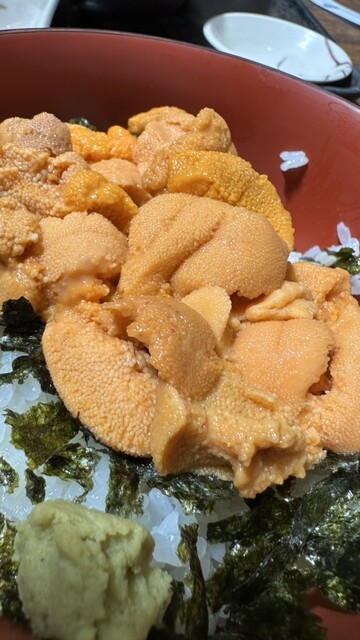 毎年、札幌からドライブがてらウニ丼を食べに行くのが恒例となっている。今年は、折の赤ウニがなかったので塩水赤ウニ。