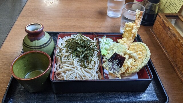 駅からは離れた混雑する生活道路沿いにあるお店 土曜の正午に訪問 運良く?駐車場も空きがありすんなり席に着けた 清潔感ある店内は広く女将さんの活気がより良い雰囲気に 注文後も出て来るのも早く そば・天麩羅・ご飯(ミニ丼)の量も多く そば・汁ゎ私の好みでミニマーボー丼もピリ辛でとても美味しい しかも安い おすすめの蕎麦屋さんだ