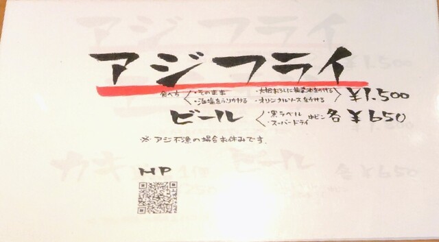 これだけこだわっているとゆーのに、但し書きに「長々と書きましたが、所詮鯵フライですのであまり期待せずに召し上がってください」のお茶目で控えめな一言もツボる(≧∇≦)