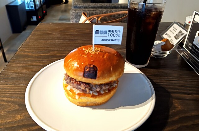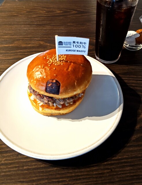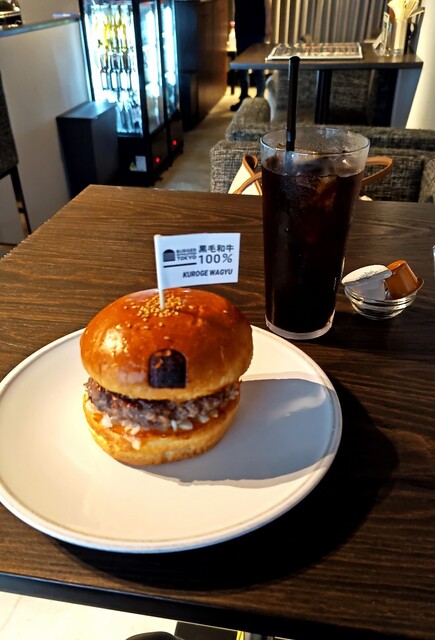 頂いたのは、黒毛和牛バーガーとアイスコーヒー。計2160円。