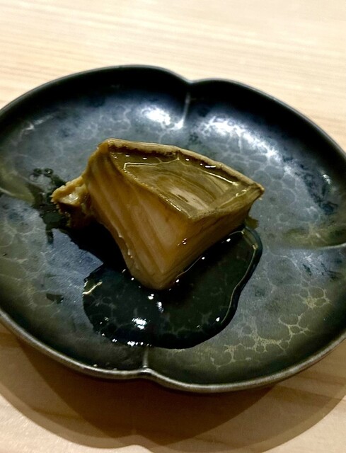❽煮鮑~宮城気仙沼産の鮑をじっくり煮て透明な餡に絡める。餡がまた上品かまた高級感を醸し出す味わい。