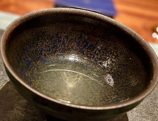 〜うほっ、大好きな縞鯵ではないか。串本から届いた神経締めされた縞鯵。レモングラスの藁で軽くスモークされたお造りに近いレアな火入れに山葵、日本料理に傾きかけた味覚を、お米と中国甘酒のソースで、一気にこっちの世界に引き戻される。佐渡ヶ島の脂ののった戻り鰹を添えて。