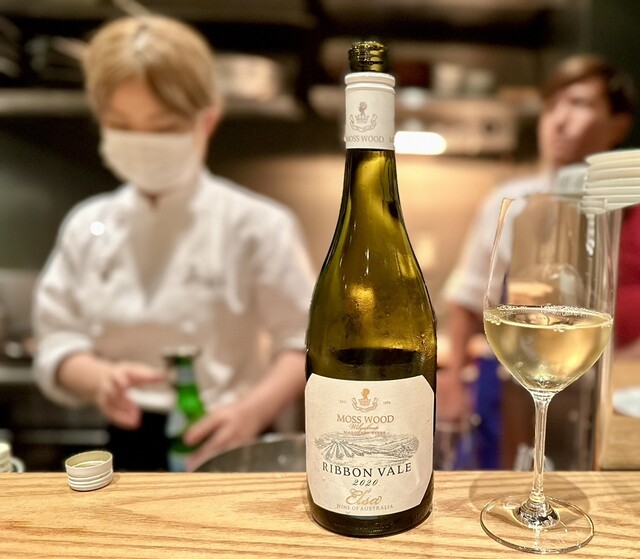 お次の冷製カッペリーニに合わせるため、白ワイン「MOSS WOOD RIBBON VALE2020」。