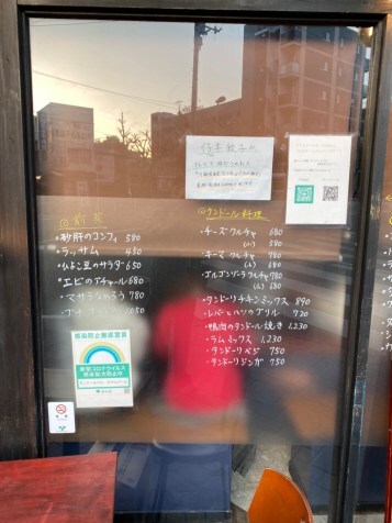 店外の窓ガラスに書かれたメニューをチェック!