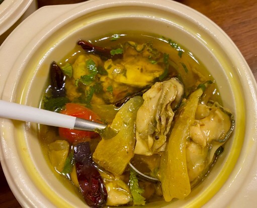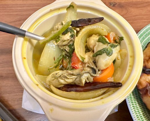 スパイス炒めとあったけれど、アヒージョのようなオイル煮という感じの牡蠣料理。