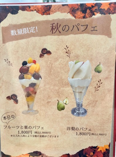 メロンやマンゴーのズコットは1カット、¥1,700超え!