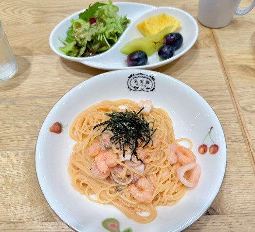 こちらも海老、アサリ、イカが入った和風ベースな明太子パスタ。