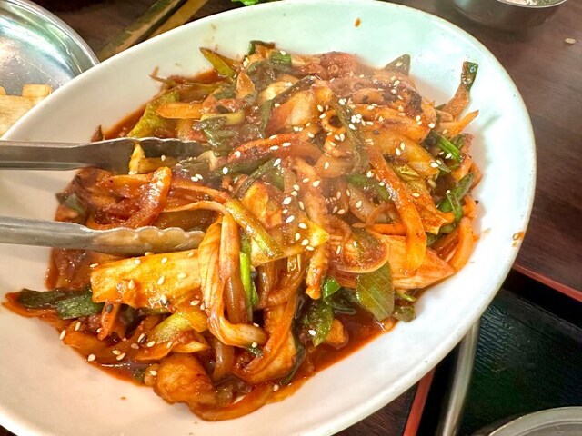 サムギョプサルの他、イイダコの甘辛炒め「チュクミ」も人気なんだとか。