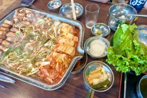 夫が事前に調べて気になっていたサムギョプサルの人気店へ行ってみることに。