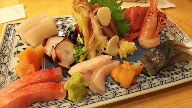 グランドメニューもありますが、その日その日でいいものを仕入れていらっしゃるので、店内掲示のものを食べるといいと思います。カウンターもあるので、一人でも問題ないと思います。