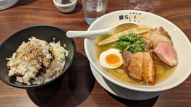 塩らーめん(4種の塩を使用) ¥960+とろろの入った焼豚丼 ¥420→¥0(無料クーポン券) ※現金のみ(食券自販機)