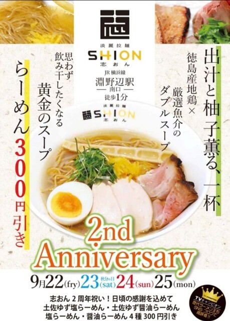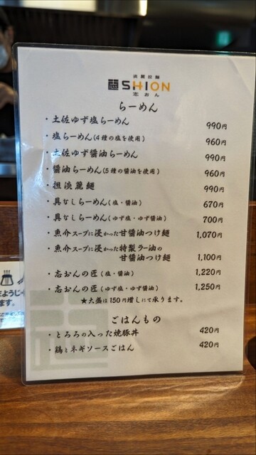 志おんの匠(ゆず醤油) ¥1,200 ※現金のみ(券売機)