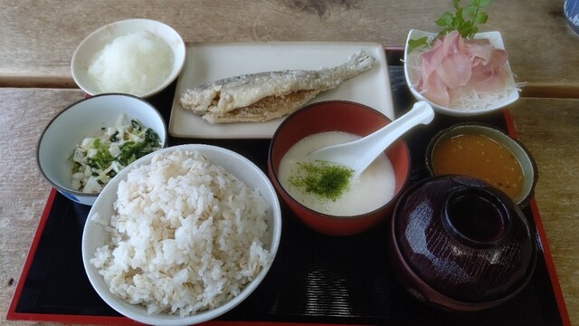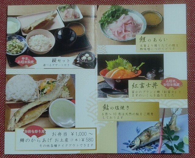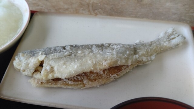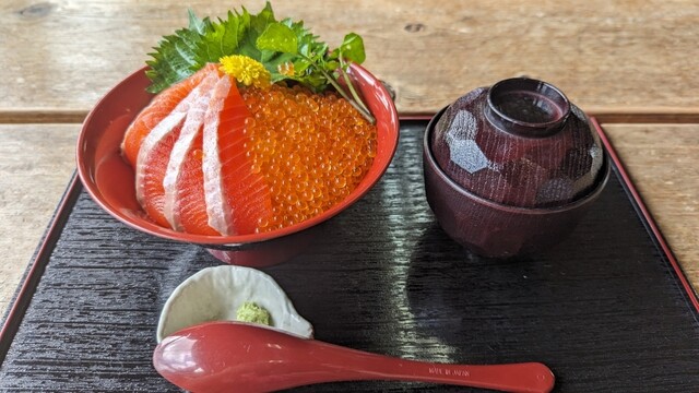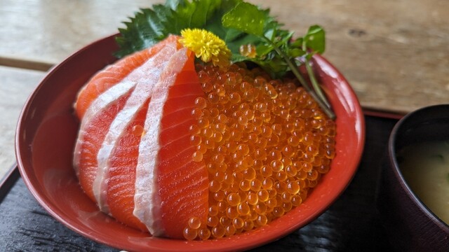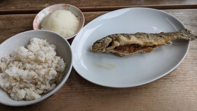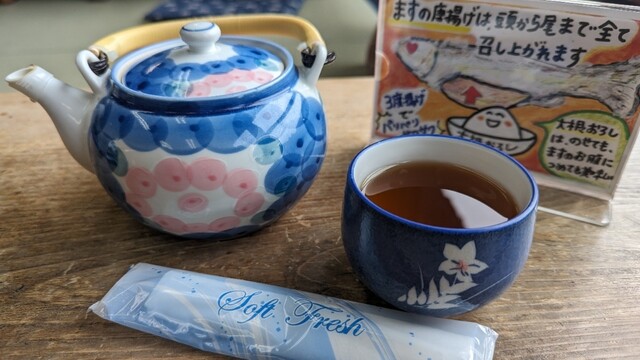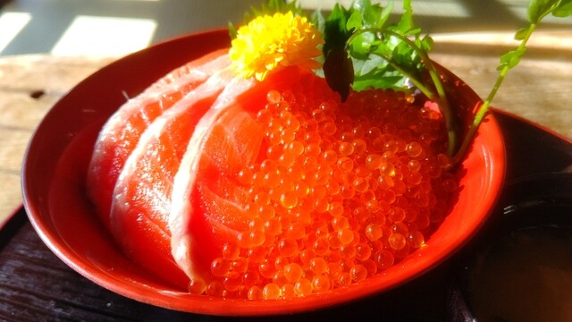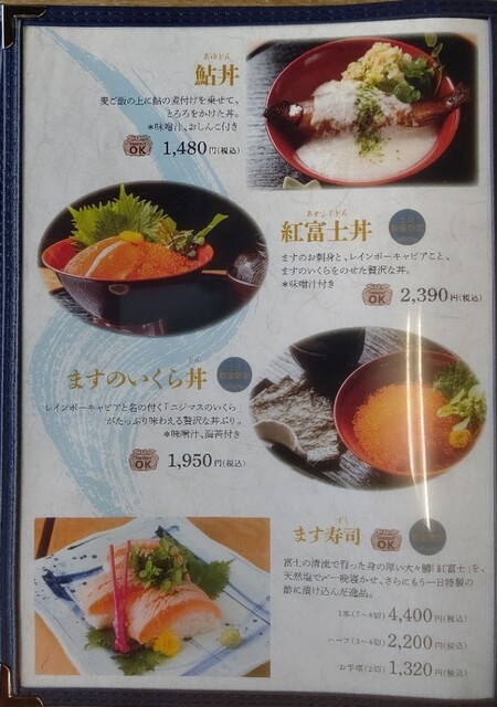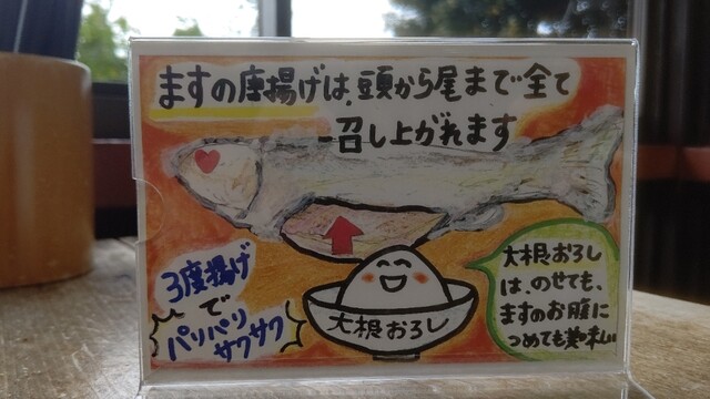 日曜日ですが天気が不安定なため空いてるかな?思いましたが13時過ぎでも大盛況です\(◎o◎)/!土休日限定赤富士丼狙いでしたが、すでに品切れとのこと。。ただますのお刺身がかろうじて残ってるようなので、そちらをオーダーしました。ますの唐揚げもと悩んだのですが、予算オーバーだなと、我慢。30分ほどで着膳したのですが、刺し身は本来7切れのとこ最後5切れしか取れなかったとのことで、それならと迷ってた唐揚げも追加オーダーしました。ますの刺身と唐揚げも安定の美味しさでした♪