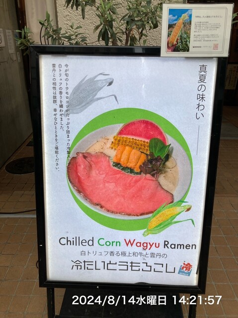 雲丹と和牛とトリュフ削る冷たいとうもろこしのらぁ麺 2,000円