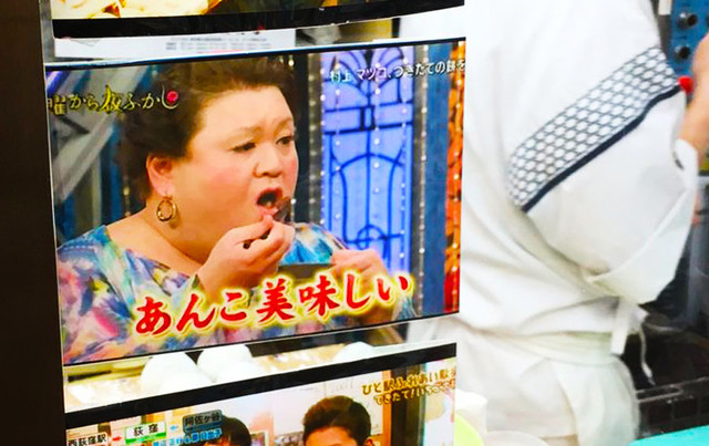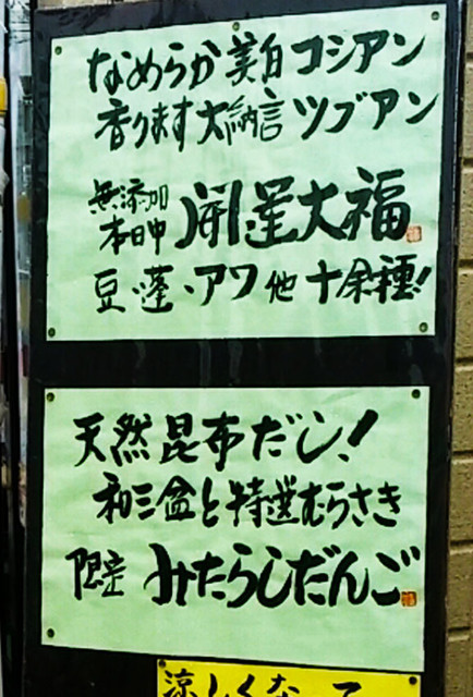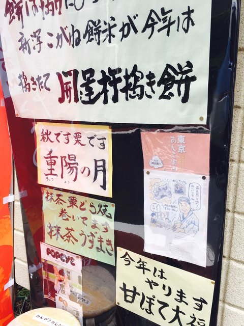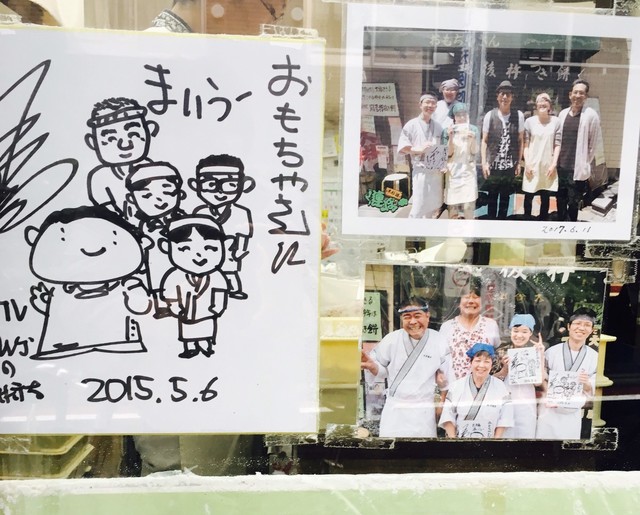 土日とかだと行列を作ってる和菓子屋さんで、印象なのは店内と行列店頭の、テレビの取材の写真やサインの数々!