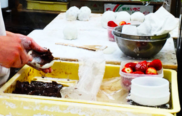 並んでる間も、外からいちご大福作ってるところが見えるので、いい暇つぶしに!