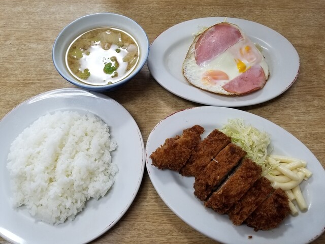 「豚カツ・ハムエッグ定食」(1,000円) ーー 写真の通り。