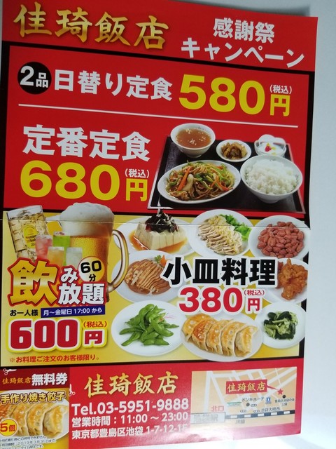池袋1丁目、へいわ通り「佳琦飯店」。