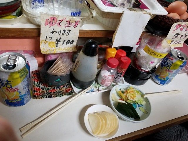 「缶チューハイ」と「いそべ焼き」しか注文していないのに、勝手に他にも出てきたりする。