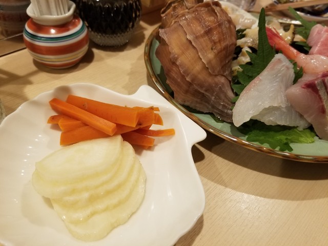 いつものように、簡単な刺し盛りから始まるのだが、ツブ貝、アワビ、特にイイ感じ。