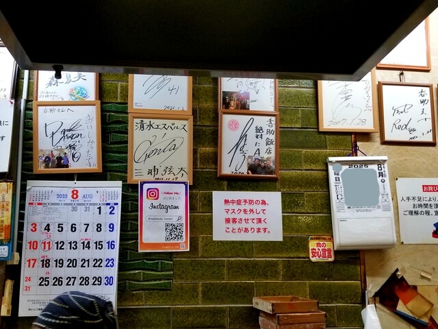 この店、昔から店内に芸能人やドラゴンズの選手の色紙がたくさん飾ってある。それとともに、高校野球のテナントも最新のモノまである。聞いた話によると、この店の大将は、支店の弟とともに高校球児だったらしい。この店の大将とはそれほど話をしたコトがないが、支店の大将(弟)とはいろいろ話をした。支店の方は、ラーメンは1種類しかなく、この店の濃口とあっさりの中間位だったが、そちらも好きだった。コショーを最初から多めにふりかけられてあり、油の濃度とコショーのバランスが素晴らしかった。