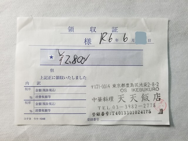 池袋2丁目、「天天飯店」。【2nd】