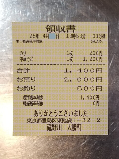 東池袋1丁目、「滝野川 大勝軒」。【79th】