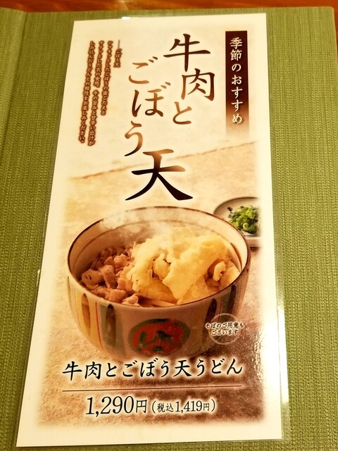 牛肉とごぼう天うどん。