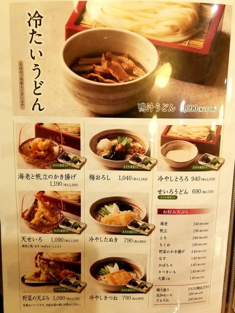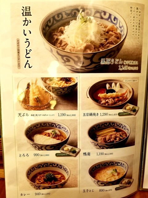 温うどんメニュー。