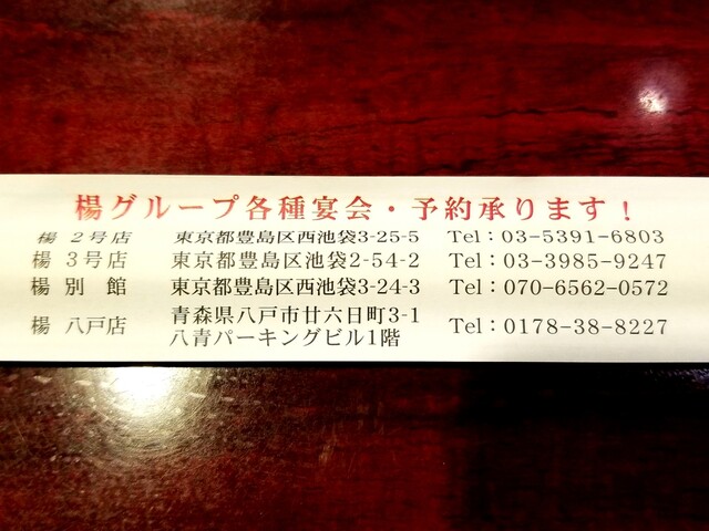 別館が休みだったので、久々に「楊 2号店」に来た。