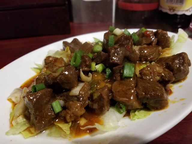 今回食べた「五香牛肉」、3号店の頃は、冷菜としてのモノだったが、この別館では炒め肉料理としてのモノだった。