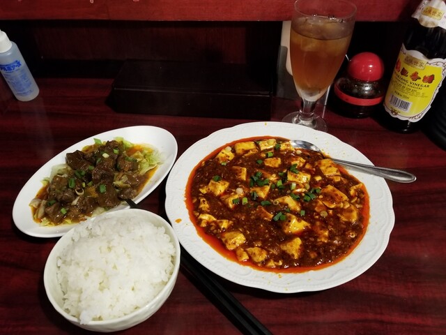 「麻婆豆腐」(950円)+「五香牛肉」(980円)+「白飯」(280円) ーー 写真の通り。