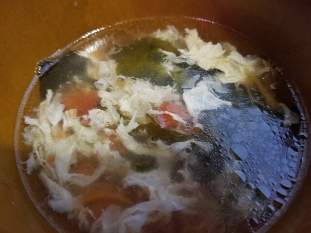 このランチには、ご飯・玉子スープ・サラダ・デザートが付く。