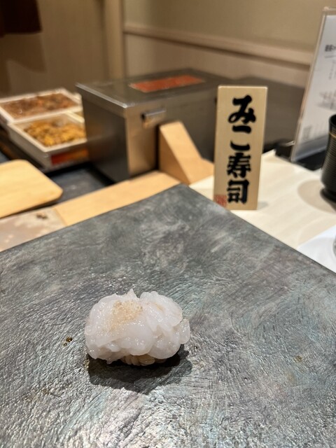 びっくりしたのが、最初に「ウニ3貫」が提供された事で、目玉が最初に!!と、思いましたが、そこからイカ、鯵、鯖、鯛、カンパチ、ホタテ、白エビ、車海老、赤身、中トロ、イクラ等、総勢19貫➕おかわりウニ3貫で、22貫!!大将も気さくな感じで、連れと楽しく!美味しく頂きました☆