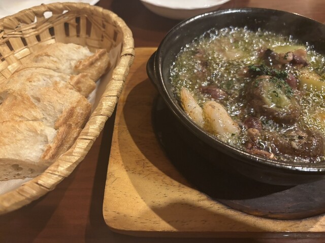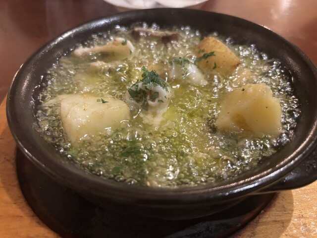 アヒージョ、パスタは絶妙の塩加減、メインの若鶏もゴルゴンゾーラソースの風味良く、料理をサーブしながら適度に気配り、大したものだと思います。