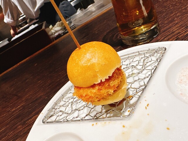 牛肉にフォアグラに海老、アスパラと13本の串コース。最後はごはんに味噌汁、キウイのシャーベットで〆。
