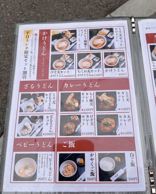 あつあつかひやひやのかけうどんと、かやくご飯か白ご飯が選べます。