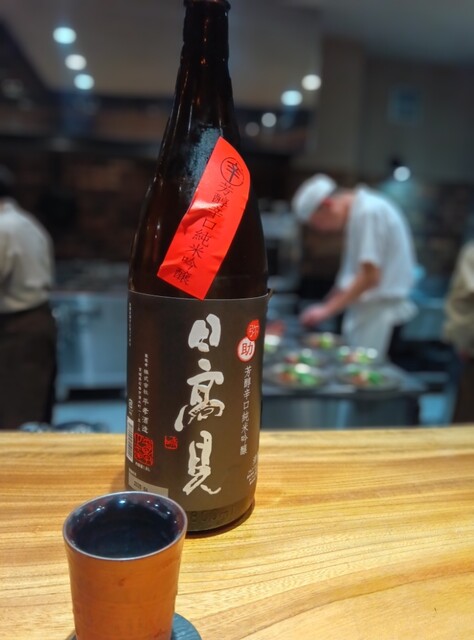 次は天ぷらなので、日本酒をお願いして準備します。ここで選ぶのは石巻にある平孝酒造の日高見。日高見は辛口のお酒です。普段辛口はあまり選ばないのですが、天ぷらに合いそうですし、何より石巻のお酒ということで選びました、